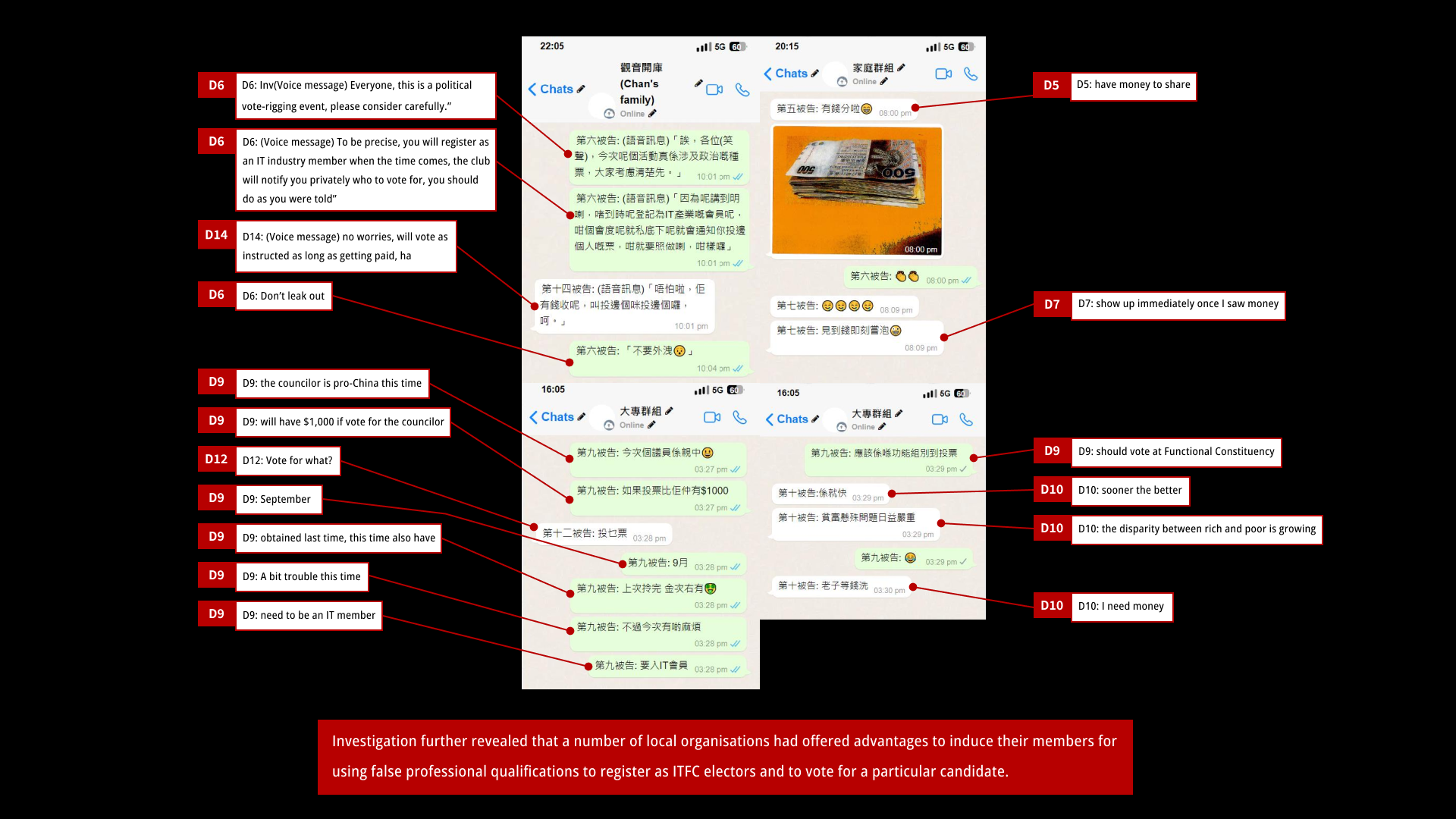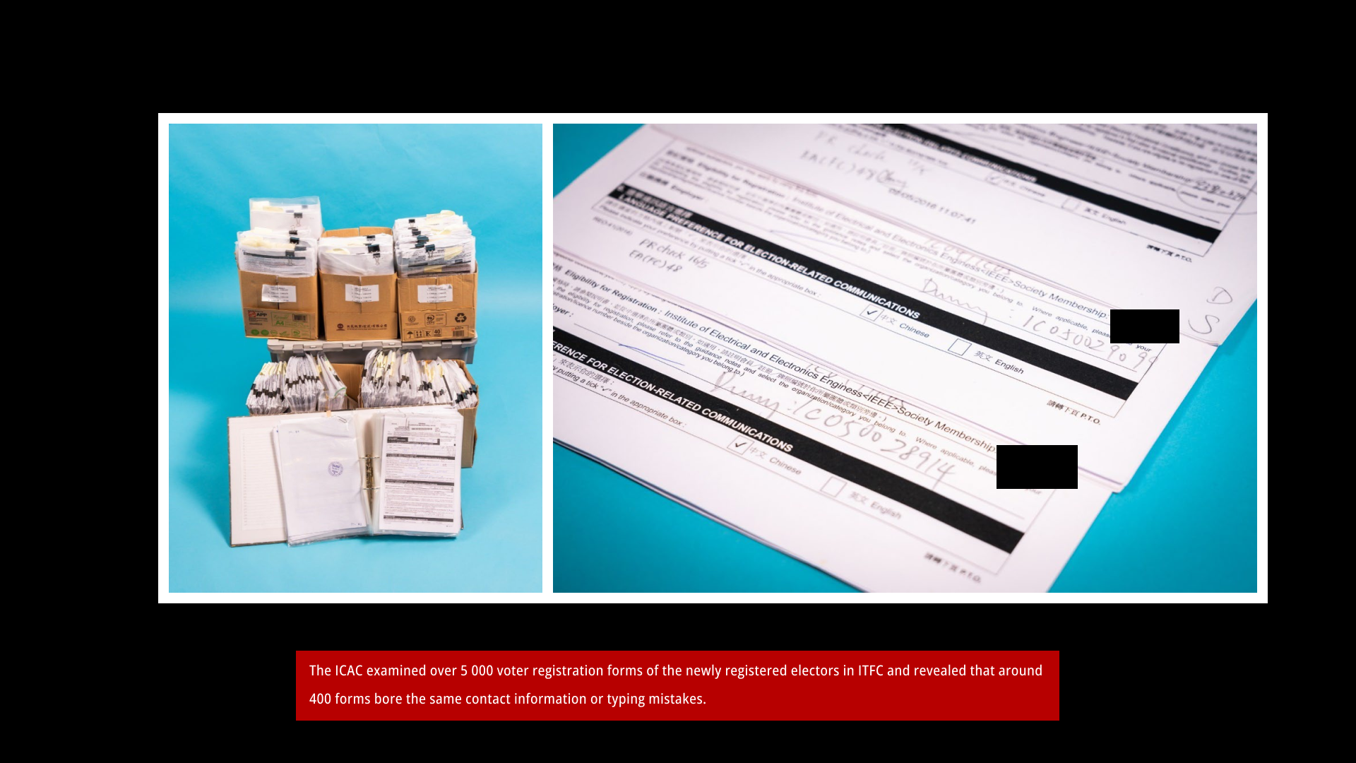 In 2016, the number of registered electors in the Information Technology Functional Constituency (ITFC) significantly increased to 12 000 persons, which caused social concerns on whether vote-rigging activities were involved. The ICAC examined over 5 000 voter registration forms of the newly registered electors in ITFC and revealed that around 400 forms bore the same contact information or typing mistakes. Investigation further revealed that a number of local organisations had offered advantages to induce their members for using false professional qualifications to register as ITFC electors and to vote for a particular candidate. Eventually, the ICAC arrested a total of 225 persons and 14 of them were convicted of the offences of vote bribery and conspiracy to defraud. After a review of sentence, the Court of Appeal increased the sentences of six defendants to jail terms up to 23 months. This is also a case in which the largest number of persons were arrested for vote bribery or vote-rigging since the establishment of the ICAC.