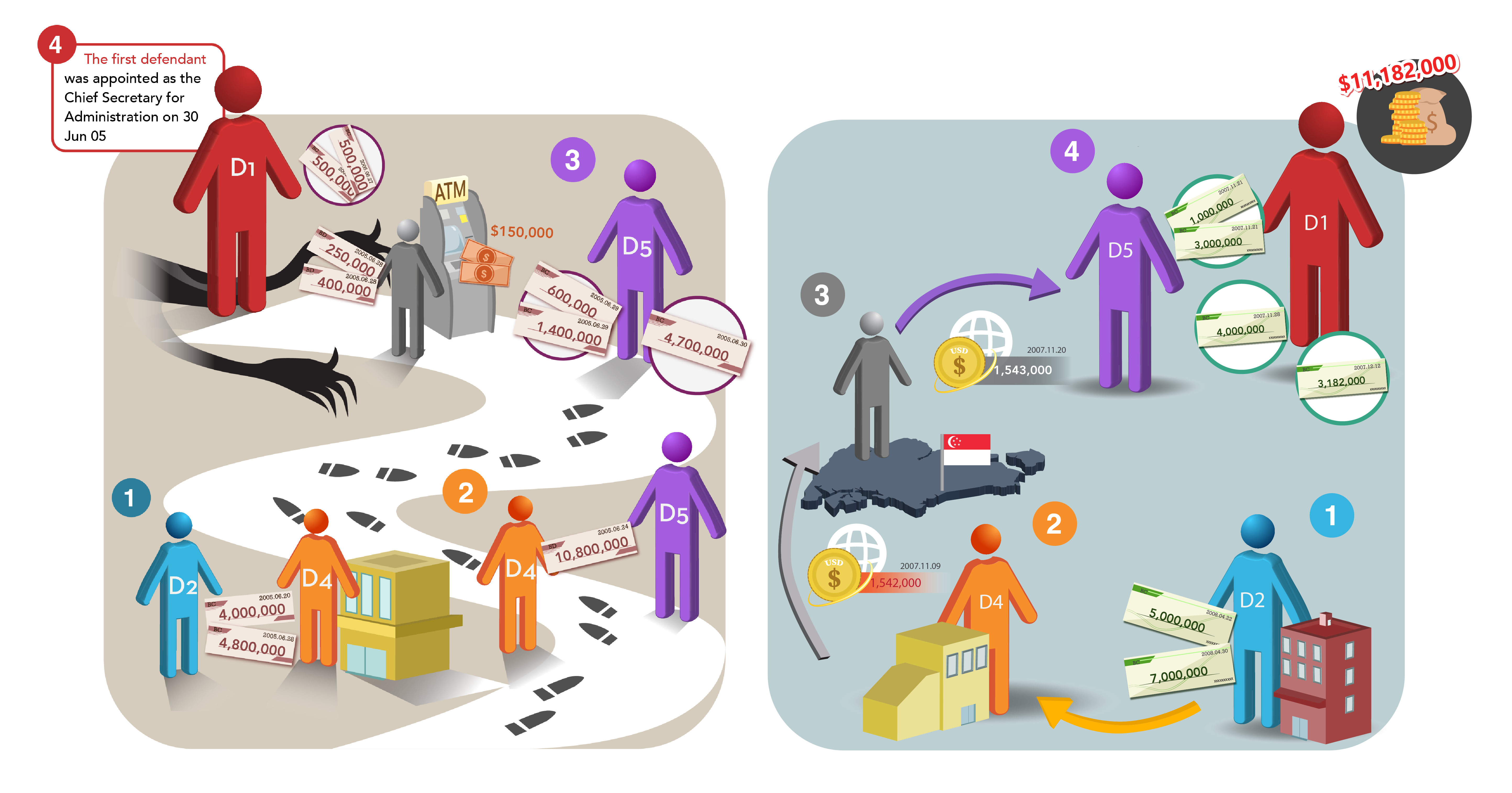 ICAC inquiries revealed that a Superintendent of Police (SP) posted to the Hong Kong Island Regional Headquarters had maintained corrupt dealings with two private clubs operators. During the ICAC investigation, the SP was seen to have met the two operators on 11 occasions and visited one of the private clubs twice. In two of the meetings, the SP disclosed to an operator police confidential information relating to the private clubs and gave advice for evading police inspections. An ICAC operation was triggered off after the last meeting between the SP and one of the operators inside the SP’s vehicle. Cash bribes of HK$351 000 in total were recovered from the vehicle, residence and office of the SP. Eventually, the SP and the two operators were convicted of corruption offences at the District Court and sentenced to jail terms ranging from 12 to 28 months.