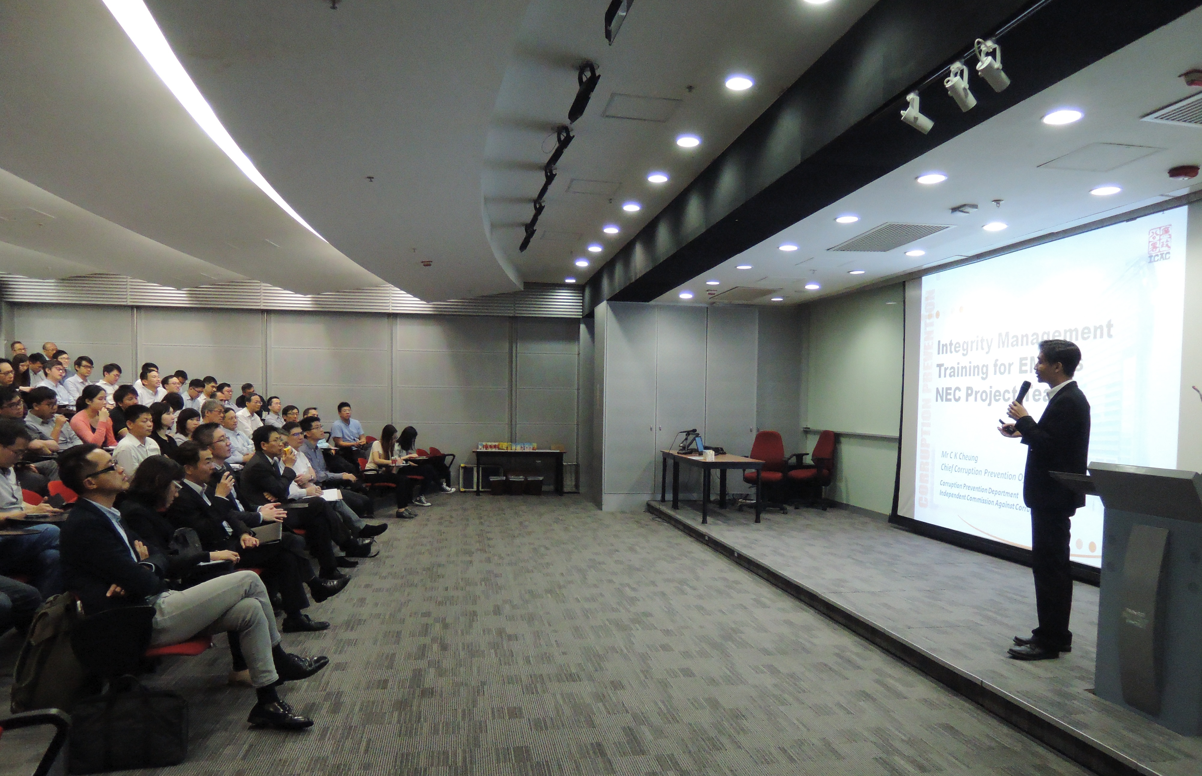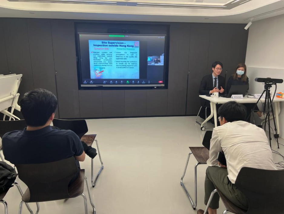 To help industry players build up and boost their immunity against corruption, CPD developed a corruption prevention “vaccine” – the Integrity Management System (IMS) – for “injection” into their management and operational systems. IMS consists of three key active ingredients: Integrity Policy, Integrity Training and Integrity Risk Management (IRM). In March 2021, the Development Bureau (DEVB) incorporated the first two components of IMS as a listing requirement for the “List of Approved Contractors for Public Works” and “List of Approved Suppliers of Materials and Specialist Contractors for Public Works”. The effect is that all contractors undertaking government construction projects will have to implement an Integrity Policy and arrange their senior management staff member to regularly attend Integrity Training. In April 2022, the Construction Industry Council (CIC) also added integrity management as one of the registration requirements for their registered contractors and subcontractors under the Registered Specialist Trade Contractors Scheme.