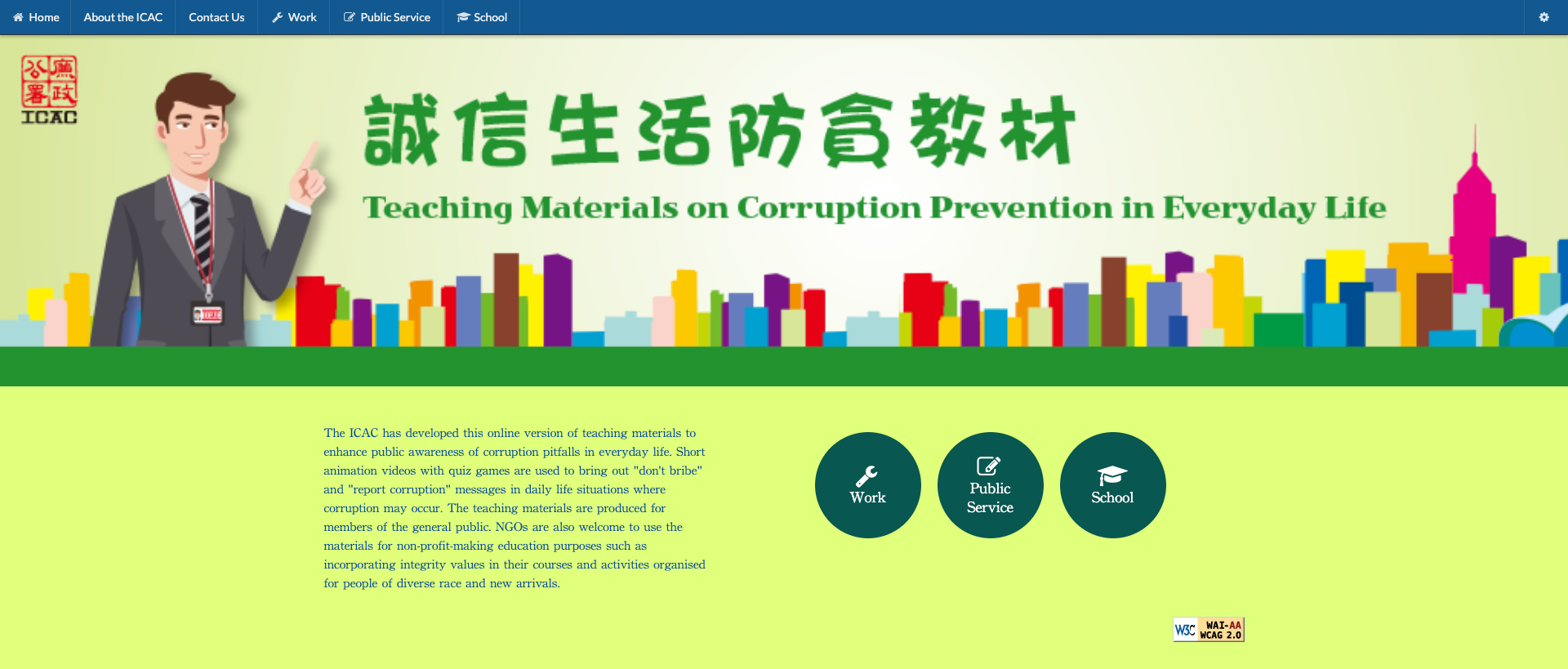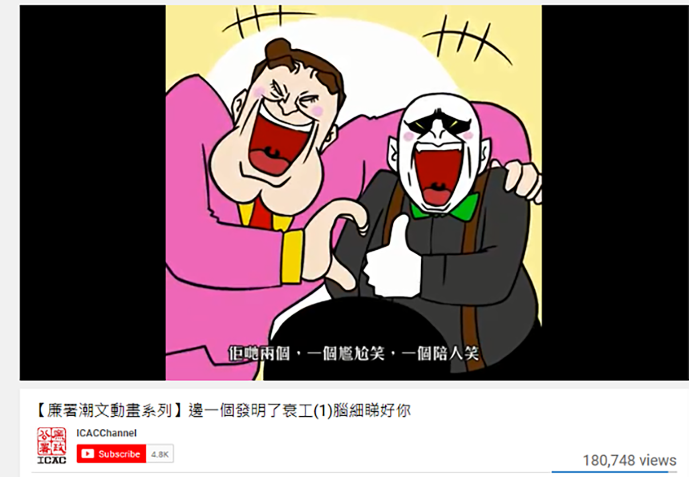 ICAC’s signature TV Drama Series and advertising campaigns continue to keep the issue of anti-corruption in the forefront. In recent years, ICAC has strengthened the use of Facebook, Instagram, YouTube, WeChat and other social media platforms and created the virtual spokespersons iSir and iMadam to drive home integrity messages in a lively and interactive manner.