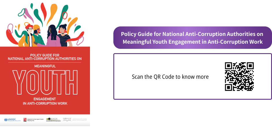 The ICAC also works on a wide range of anti-corruption initiatives with international and regional organisations. For example, the ICAC and the United Nations Office on Drugs and Crime jointly developed a policy guide for national anti-corruption authorities on meaningful youth engagement in anti-corruption work in 2023.